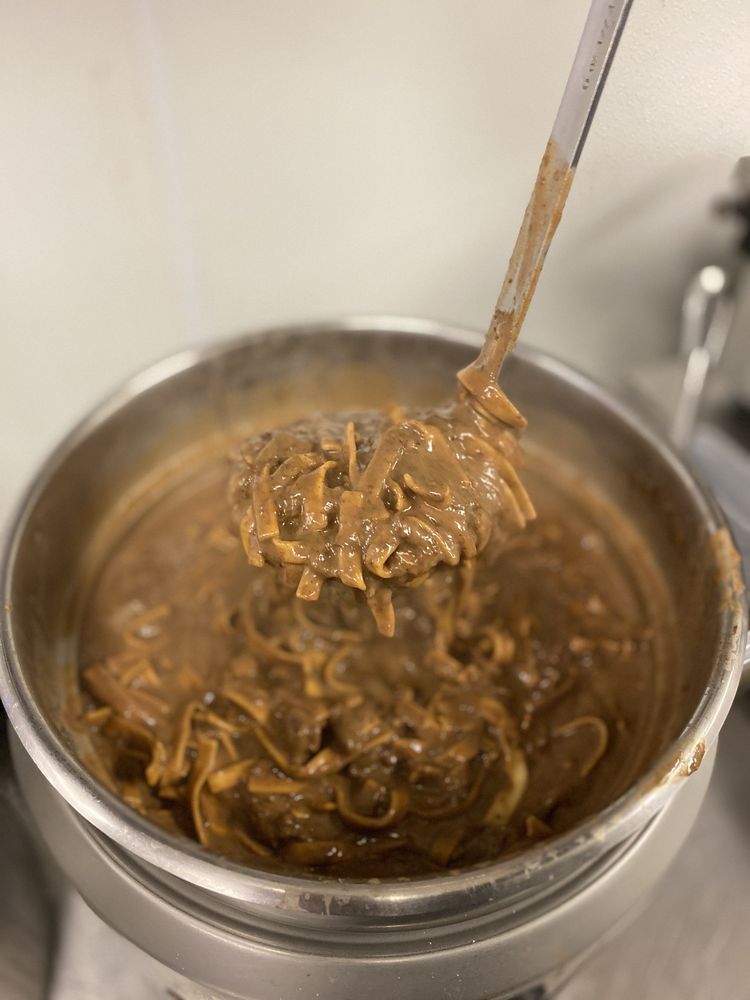 Chicken & Noodles Over Homemade Mashed Potatoes & Gravy. Served Over a Slice of Bread